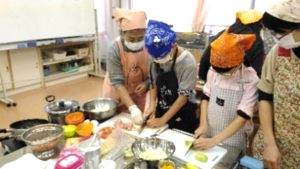 地域ケアプラザ、自治会館等の会場でお話や体験を通して「朝食の大切さ」、「バランスよく食べる工夫」、「野菜たっぷり、塩分少なめの工夫」等 世代にあわせたテーマで啓発をしています。