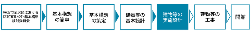 令和4年度は、横浜市金沢区における区民文化センター基本構想検討委員会において、文化施設として必要な機能などについて議論され、横浜市へのご意見をいただきます(答申)。その後、答申を踏まえ「基本構想」を策定していきます。