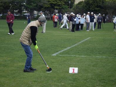 グラウンドゴルフ 慎重に第一打