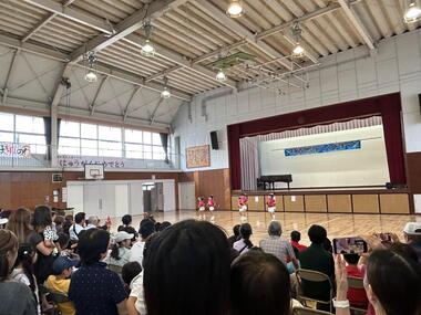 会場の大道小学校では、前半は体育館で子どもたちのダンスなどのステージ、後半は校庭にて自治会町内会や関係機関による模擬店が開かれました。来場者は約2,000人にのぼったそうです。