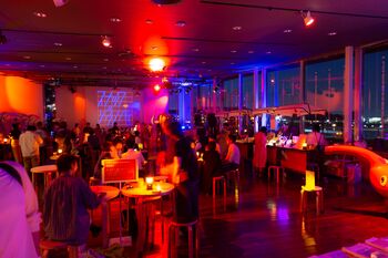 象の鼻テラスでは、2025年7月から9月にかけて、夜間の賑わい創出を目指し、アート・音楽・市民参加型プログラムを組み合わせた「夜まで楽しい“象の鼻テラス”」を多彩に展開しています。国際アートフェア「Tokyo Gendai」の開催に合わせて実施するのは、人々の出会いと交流を生み出すサロン「スナックゾウノハナ」。アーティストがママ/マスターとなり、来場者とお酒を片手に、直接対話できる機会です。総勢約12組のアーティストたちが集結し、妖しい光に包まれた異色な空間の中、多彩なゲストとトークを楽しむスナックブースとダンスフロアがカオティックに交差します。