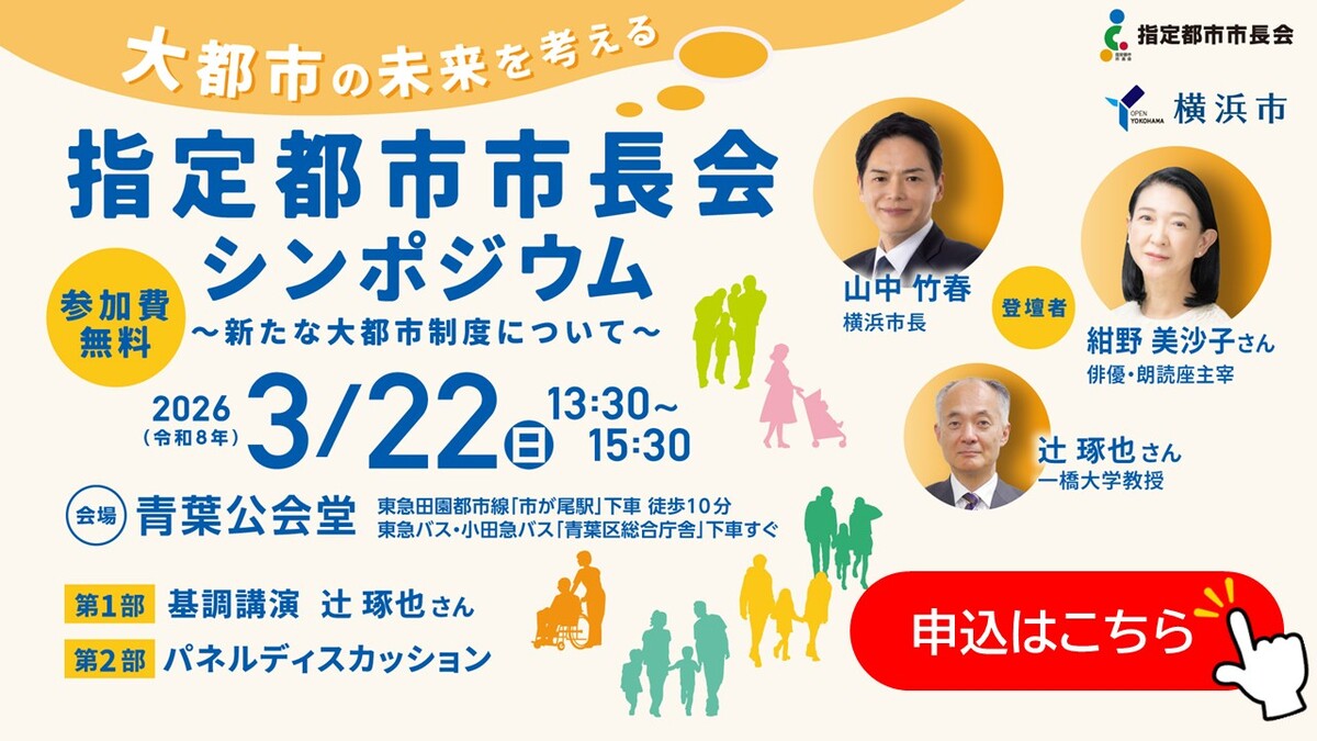 【参加者募集中】3月22日(日曜日)に指定都市市長会シンポジウムを開催します!