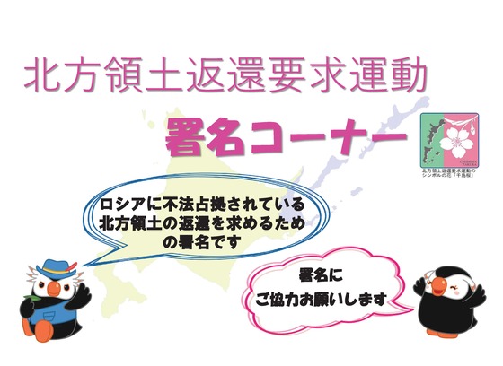 北方領土返還要求運動に係る署名への御協力をお願いします!