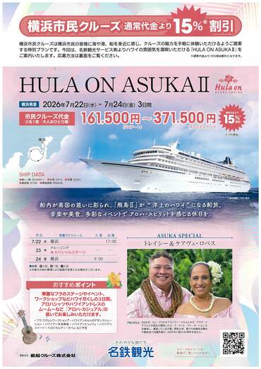 ※抽選結果につきましては、ご応募いただきました方全員にご案内いたしますが、順次回答をさせていただきますので、応募期限後10日を過ぎても回答がない場合は、名鉄観光クルーズセクションまでお問い合わせください。