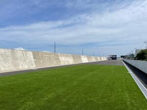 護岸の背後に整備された広大な広場です。イベントを実施することができます。