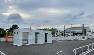 緑地の南側、八景島方面へ続く散策路の入口にあるトイレ棟です。