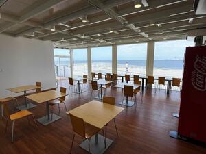 2階休憩所では天気を気にすることなく、海を眺めながらゆったり過ごすことができます。