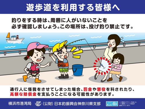 近頃、遊歩道に来場された方からの投げ釣りについての苦情が、港湾局に多く寄せられています。