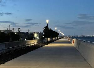護岸上部に整備された、散歩・釣りなどが楽しめる延長1キロ、幅員5メートルの遊歩道です。