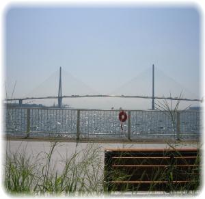 正面に「鶴見つばさ橋」を望み、港を身近に感じることができるビュースポットです。