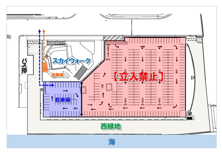 ※スカイウォークご利用の方以外の駐車・駐輪はできません。