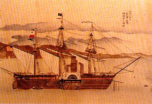 1853年7月(嘉永6年6月)、アメリカのペリー提督が4せきの船を率いて浦賀に来航し、日本の鎖国政策を変えさせ、港を開くように強く要求しました。