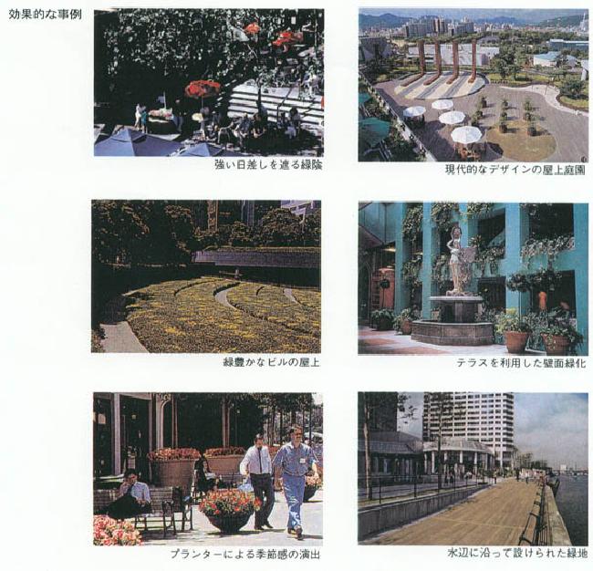 港の見える丘公園等から見下ろした際の景観に配慮し、建物の屋上や壁面を利用した緑化を積極的に行ないましょう。また、歩道状空地や敷地内空地などの建物外構に透水性のある舗装材料を用いるなど、地域の生態系に配慮した、環境にやさしい都市空間の形成に努めましょう。