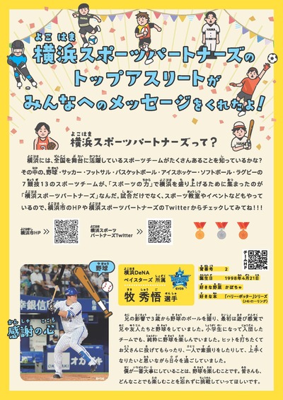 横浜スポーツパートナーズ13チームにご協力いただき、市立小学校と特別支援学校小学部の全児童に向けて、「ヨコハマスポーツ