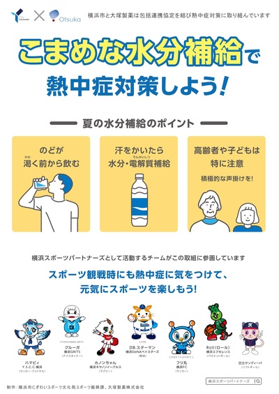 横浜市と包括連携協定を結ぶ大塚製薬と協働して、熱中症対策に関するポスターを作成しました。