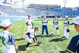 令和5年8月7日に横浜スタジアムにて、横浜スポーツパートナーズに参画する日立サンディーバ(外部サイト)協力のもと「ソフトボールクリニック」を開催しました。