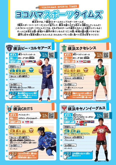 横浜スポーツパートナーズ13チームにご協力いただき、令和7年度の小学校1年生、3年生、5年生向けに発行した小学校体育副読本「たいいく」に、子どもたちへのメッセージを掲載しています。