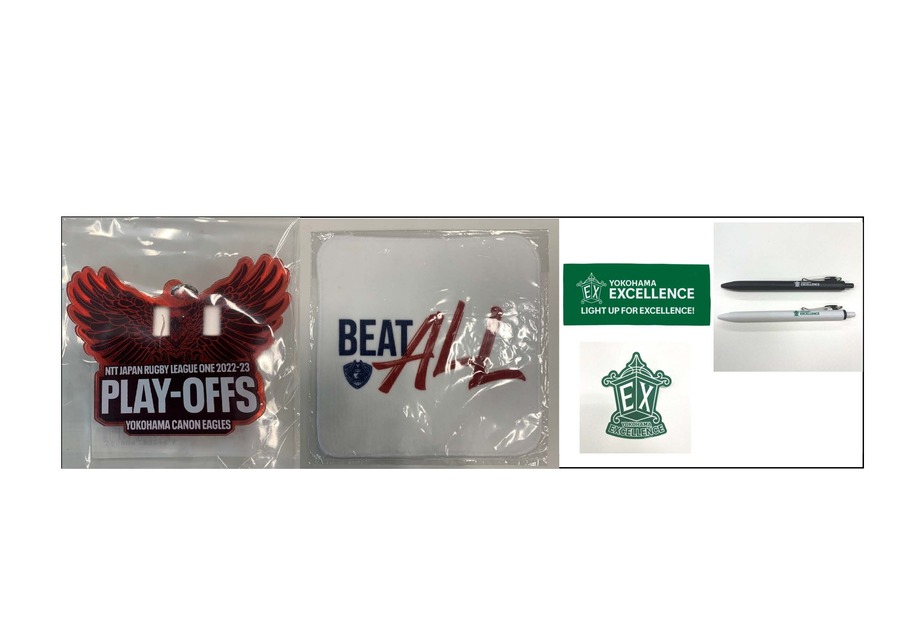横浜ビー・コルセアーズのミニタオル、横浜エクセレンスのタオル等(写真は2022-23シーズンのものに