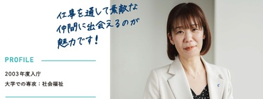 Q2 児童相談所は緊急対応も多く、困った時はみんなで協力しようという雰囲気があります。上司や先輩も社会福祉職として経験豊富な方も多く、相談もしやすいです。私の状況を気にかけて声をかけてくれます。研修も多く、スキルアップできる機会になっています。
