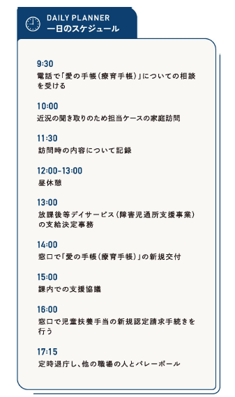 福祉関連の制度や施策の立案、運営、予算管理や福祉事業所の運営支援などを行います。