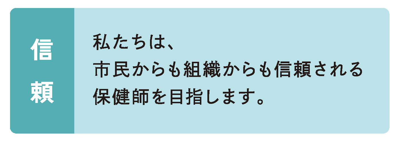 そして、横浜市保健師として大切にしたい言葉として、「信頼」を掲げ、日々の業務に取り組んでいます。