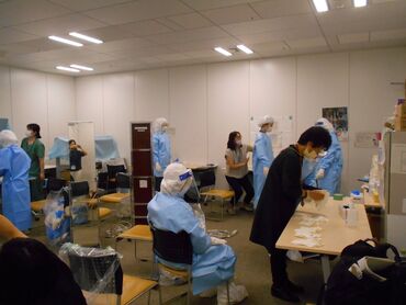感染症の蔓延を防ぐため、平時から研修や個人防護具の着脱訓練等を行い、健康危機管理対策を行っています。
