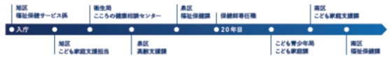 配属先は、地域の特性を活かした取組を行う「区役所」と市全体の政策や計画の策定・実施を行う「市役所」があり、個別支援から政策に関わる仕事など幅広い経験が出来ます。