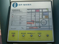 視覚障害者が自分のいる場所や行きたい場所を理解し、頭の中にマップを描けるよう(メンタルマップといいます。)地図や情報が点字などで表現してある案内板です。