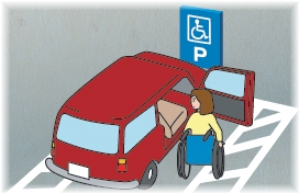 車いす使用者などが車に乗り降りする際には、ドアを広く開ける必要があります。このため、広いスペースを設けてあります。