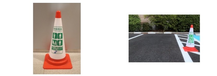 なお、不適切利用を防止する意味で駐車区画中央部に三角コーン等を配置する場合は、すぐに係員等がそれを移動できる体制を整えます。