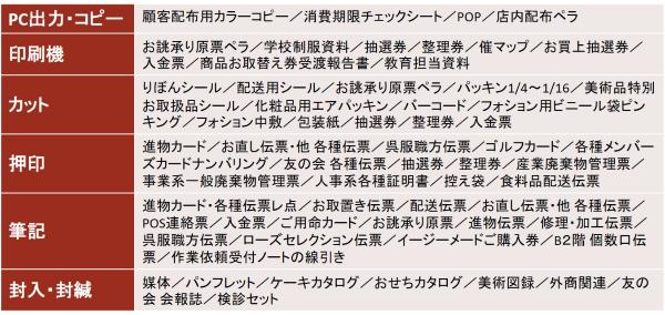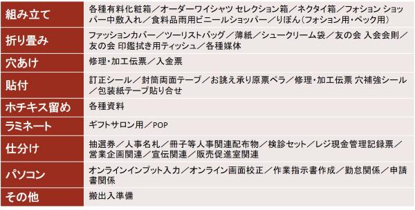 横浜店ワーキングチームの売場支援メニュー(事務所内作業)