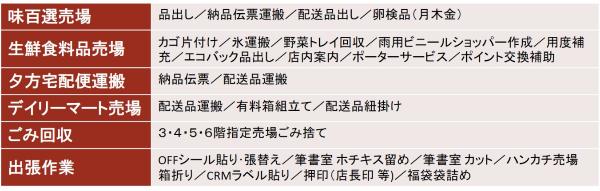 横浜店ワーキングチームの売場支援メニュー(事務所外作業)
