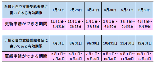 ◆手帳も自立支援も有効期限の3か月前から更新申請をすることができます。
