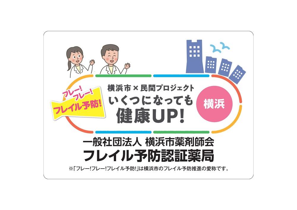 令和7年度から、「市民の健康づくりに係る包括的連携に関する協定」に基づき、一般社団法人横浜市薬剤師会に「フレイル予防薬局認証制度」の運用を依頼し、認証を受けた薬局での取組を実施しています。