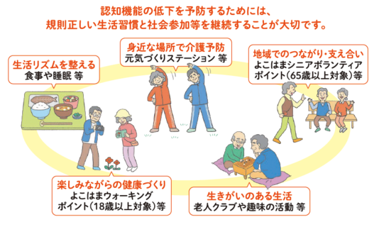元気なうちから認知症になりにくい生活のポイントを知り、継続的に実践していくことが、認知機能の維持や認知機能の低下を緩やかにすることに役立ちます。
