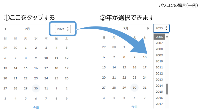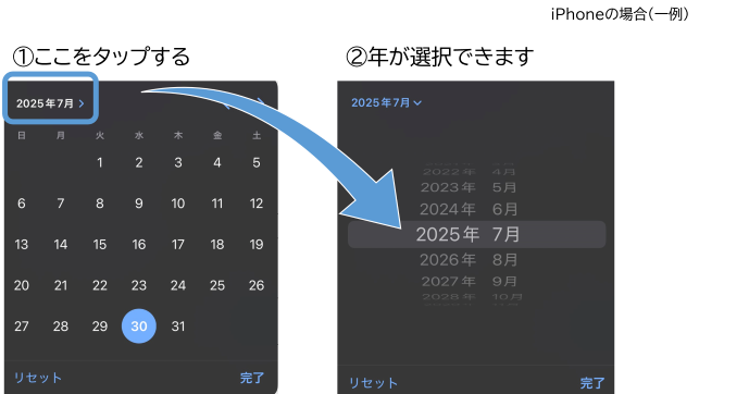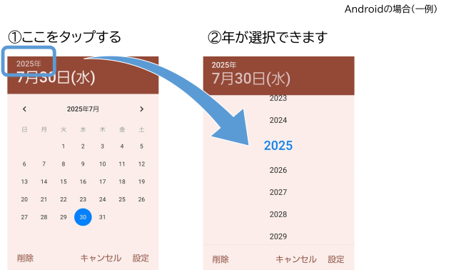 2025と記載のある部分をタップしていただくと、選択することができます。