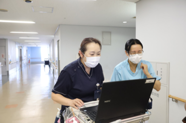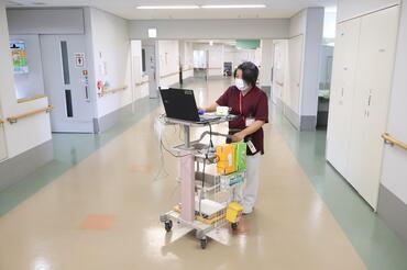 感染症患者さんは病棟内をゾーニングした上で受け入れていますが、病棟内に陰圧個室2床を有していて、空気感染予防策が必要な患者さんの受け入れにも対応しています。隔離期間中のADL低下が懸念される患者さんについては、リハビリテーション部門と連携し、ADL向上のための看護ケアを行っています。