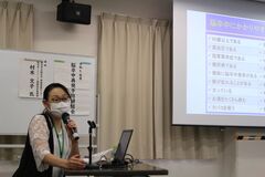 村木看護師からは、脳卒中の専門病棟での経験をもとに、脳卒中の兆候、障害される部位ごとに起こる症状の違い、脳卒中の治療法まで、脳卒中について段階的でわかりやすい説明がありました。特に脳卒中予防と兆候について時間をかけて説明を行い、受講されている方も熱心にメモをとられていました。