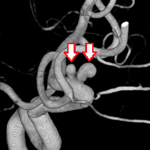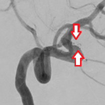 外科的治療では、開頭して脳動脈瘤の頸部を金属製のクリップで閉塞するクリッピング術が行われます。脳血管内治療では予防的に、血管を通して未破裂脳動脈瘤内に到達し、プラチナ製のコイルを動脈瘤に詰めるコイル塞栓術が行われます。年齢、全身状態、脳動脈瘤の形態から、より安全で確実な治療手段を選択しています。