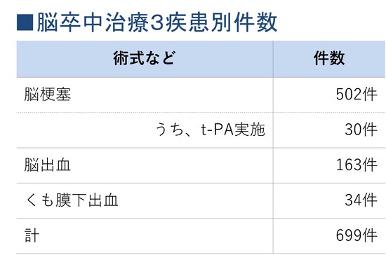 当院は、日本脳卒中学会から一次脳卒中センター(PSC)の認定を受けていましたが、令和4年「地域においてコアとなるPSC施設(PSCコア施設)」として認定されました。今後さらに地域の中核となる脳卒中センターとして活動していきます。24時間365日脳卒中の患者さんの受入れ、t-PAの実施体制はもちろんのこと、脳卒中専門医複数名体制により24時間365日血栓回収療法が可能となっています。