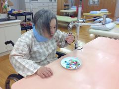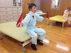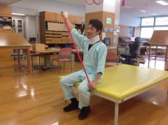 身体運動活動とは、座る、立つなど基本的な姿勢や動作の向上、麻痺した身体の関節可動域や筋力、巧緻性の向上を目標に実施する作業活動です。