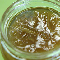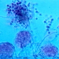 開封したところ、灰青緑色の径約10mmのかびの集落が表面に認められました。