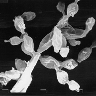 Cladosporium属はありふれたカビで、空中に浮遊し、自然界では枯死して間もない植物の茎や葉を生息の場としており、他のカビが勢力を伸ばす前に利用しやすい栄養分を素早く使い、生長し、分生子を大量に生産、飛散させ、新たな生息場所へと移住する生活をしています。また、このカビはハウスダストからの分離率は高いが、この中で増殖はできず、壁、天井、台所、洗面所や浴室で増殖し、ハウスダストに供給されているようです。