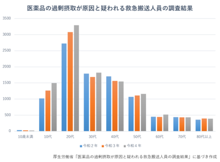医薬品の過剰摂取が原因と疑われる救急搬送人員の調査結果(厚生労働省)