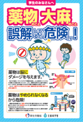 | 資料名 | 薬物乱用防止リーフレット(PDF:1,103KB) | 薬物乱用防止読本「健康に生きようパート38」(青少年向け)(PDF:7,501KB) | 薬物のこと大麻のこと誤解してると危険です!(学生向け)(PDF:2,321KB) | こどものまわりは危険がいっぱい(保護者向け)(PDF:2,262KB) |