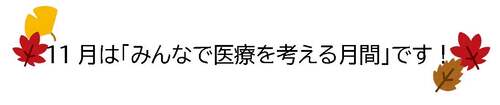 私たちの暮らしに欠かせない医療。そのあり方や役割について、改めて考える機会として、厚生労働省は11月を「みんなで医療を考える月間」と定めています。