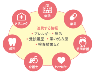 医療・介護機関が保有する患者情報(電子カルテ情報、医療機関の受診履歴、薬の処方歴、検査結果など)を、ICTを活用した連携ネットワークにより共有する「地域医療介護連携ネットワーク」は、地域全体で支える医療・介護体制の構築を推進する取組です。