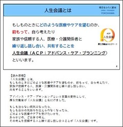 横浜市では、医療・介護関係者等がACPを普及啓発する際に活用できるツールを作成しています。