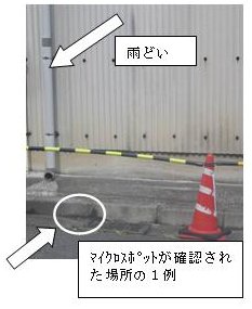 一般的には、雨どいの下や道路の側溝等がマイクロスポットになりやすいと言われています。