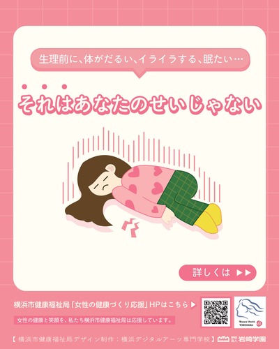 横浜市では、学校法人岩崎学園 横浜デジタルアーツ専門学校と連携し、若い世代が生理の悩みがある際に、ためらわずに受診できるよう、当事者目線でデザインしたポスターを作成しました。